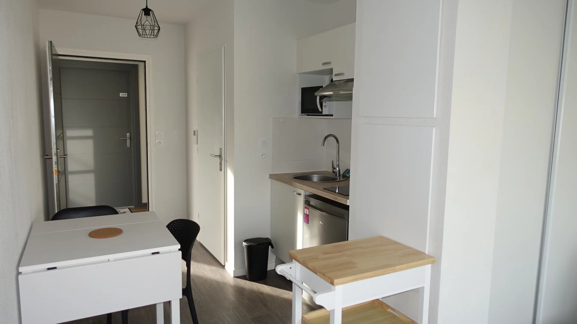 Auzeville Tolosane, à louer à compter du 09.10.2025, dans résidence récente (2020) appartement T1 "Meublé" en excellent état de 19..5m² hab. Clair et calme, situé au 3ème et dernier étage avec ascenseur. Cuisine meublée et équipée, pièce à vivre avec canapé lit, SDE contemporaine irréprochable. Prestations modernes telles que double vitrage, volet roulant, salle commune lave et sèche linge etc..